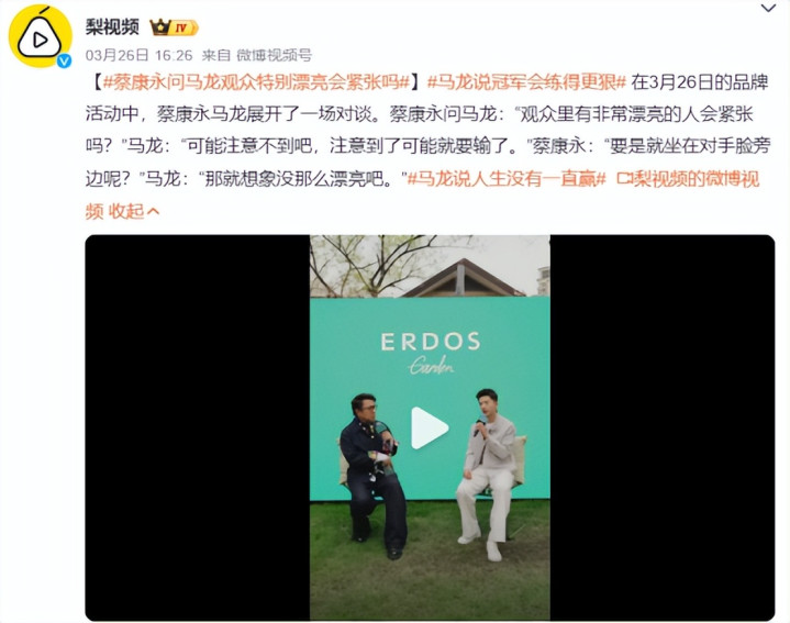 2026年3月,蔡康永采访马龙时用“美女干扰”试探定力,马龙三句话轻松化解,引发全网热议。